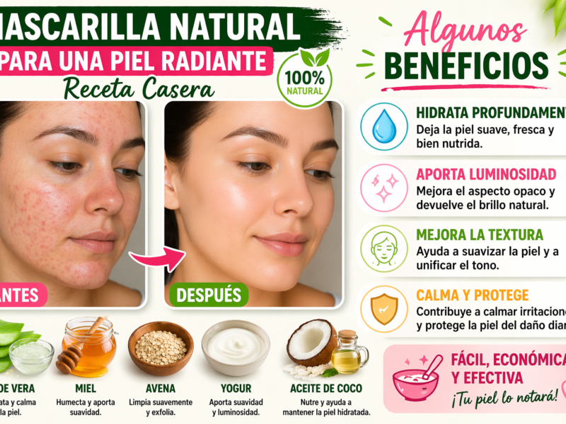 Esta mascarilla casera ayuda a hidratar profundamente la piel, combatir el acné, reducir manchas y mejorar la luminosidad del rostro. Además, es ideal para personas con piel seca, sensible o con tendencia a irritarse.