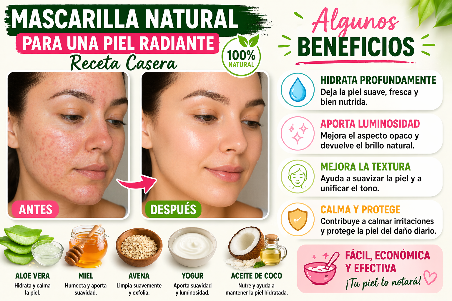 En este artículo te compartimos una mascarilla natural fácil de preparar, pensada para contribuir al aspecto saludable de la piel y complementar tu rutina de cuidado facial.
