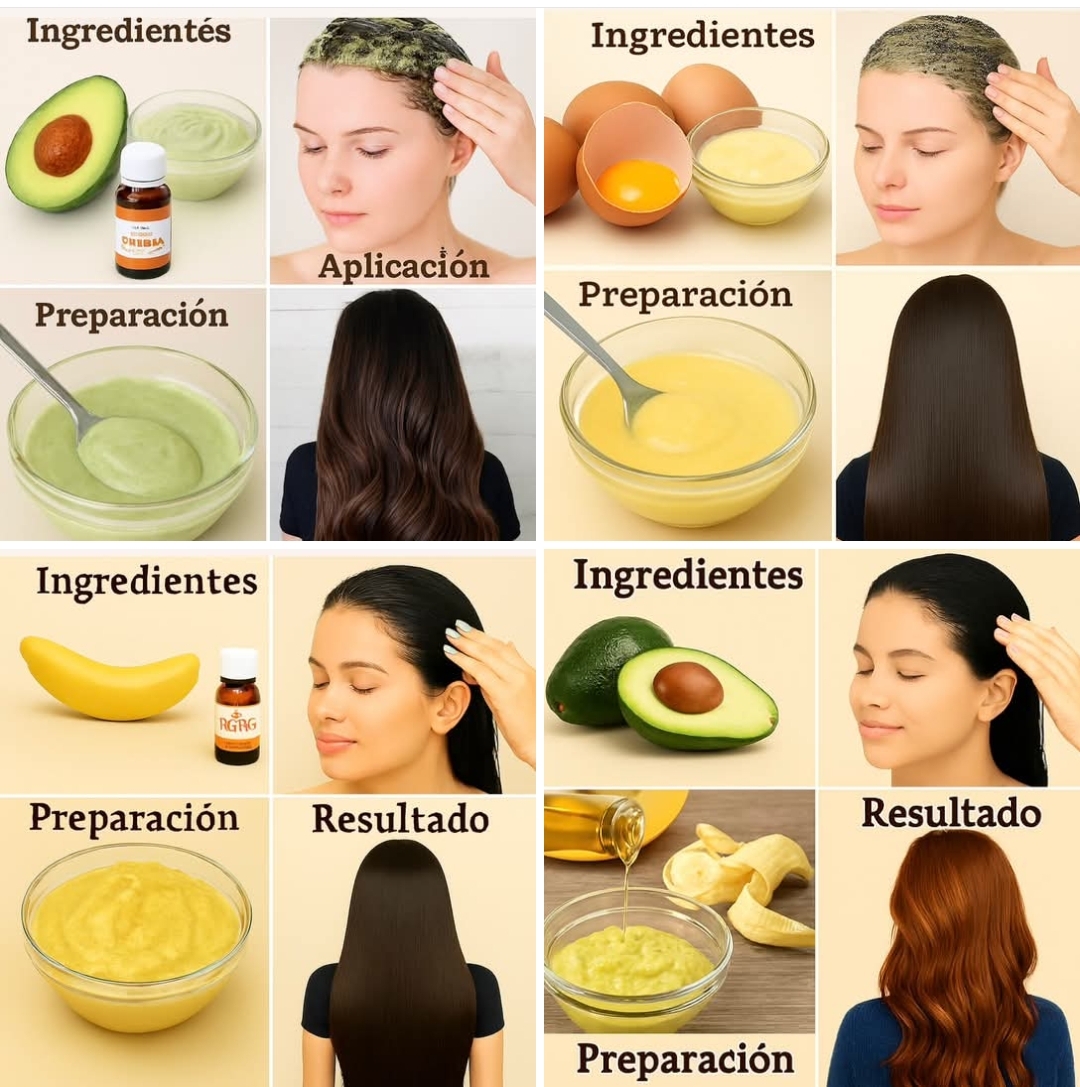 🌿 Mascarillas Caseras para un Cabello Saludable y Brillante 1️⃣ Mascarilla de Aguacate, Yogur y Aceite Esencial Beneficios de los ingredientes: Aguacate: Rico en vitaminas
